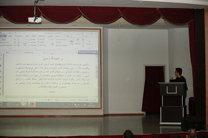 Seminerin ardından belge almaya hak kazanan üç öğrenci kürsüye gelerek Osmanlı Türkçesi ile yazılmış 3 seviyede farklı 3 metni okudular.