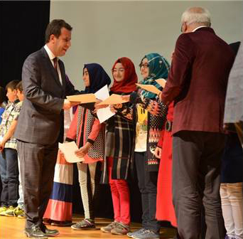 Programın sonunda Bozüyük Belediyesi Meclis Üyesi Abdurrahman Kırgız, Said Yavuz’a verdiği güzel bilgiler ve anlatımı için teşekkür ederek seramik tabak hediye etti. Hayrat Vakfı Bozüyük Temsilcisi ve Bozüyük Osmanlı Eğitim ve Kültür Derneği Başkan Yardımcısı Ahmet Said Özkan tarafından da vakıf çalışmalarına verdiği destek nedeniyle Belediye Başkanı Fatih Bakıcı ve Belediye Başkan Yardımcıları için günün anısına hazırlanan seramik tabaklar Başkan Yardımcısı Nazmi Kuru’ya takdim edildi. Programın sonunda Fatih Sultan Mehmet İmam Hatip Ortaokulu öğrencilerinden Osmanlıca kursunu başarıyla bitiren 50 öğrenciye kurs bitirme belgeleri protokol tarafından verilerek hatıra fotoğrafı çektirildi.