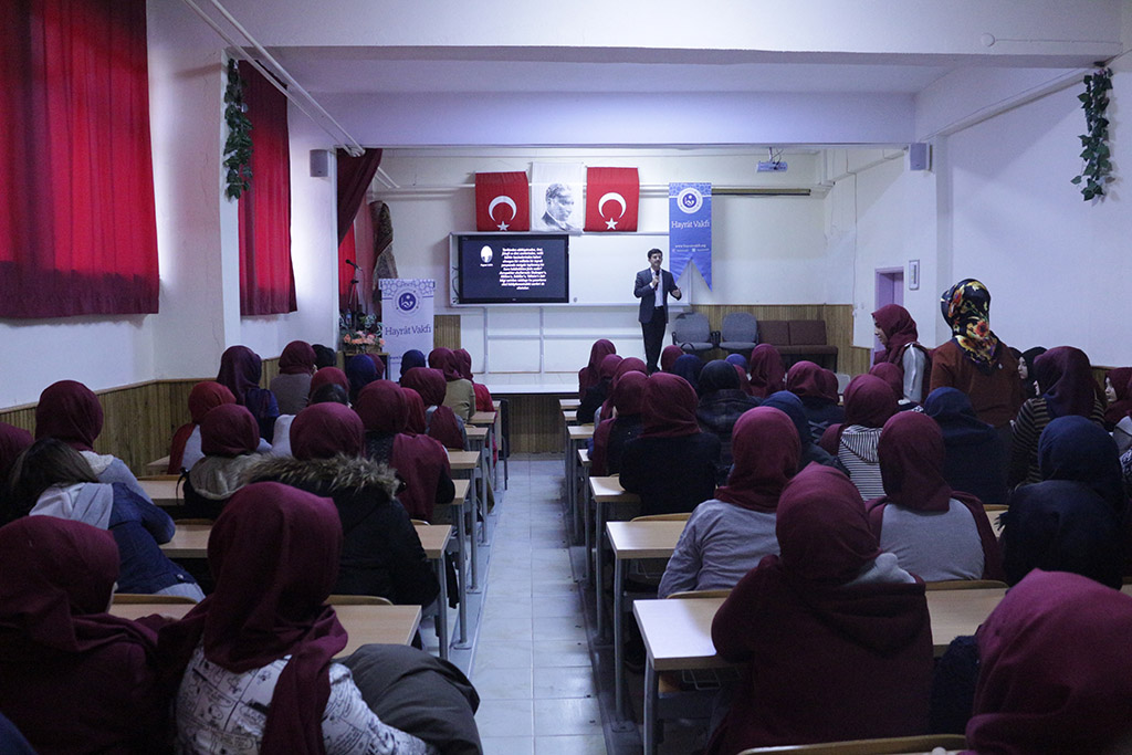 “Okullarda yapılan bu seminerle beraber yapılan protokollerle Hayrat Vakfı olarak Halk Eğitim Merkezleri, Gençlik Merkezleri, Belediyemizde, KYK yurtlarında ve okullarda gönüllük esasına dayalı olarak verilen Osmanlı Türkçesi kurslarıyla ecdadımızla köprüyü kurma vazifesini icra etmeye çalışıyoruz. Tüm halkımızı ve öğrencilerimizi bu kurslarada bekliyoruz.” dedi.