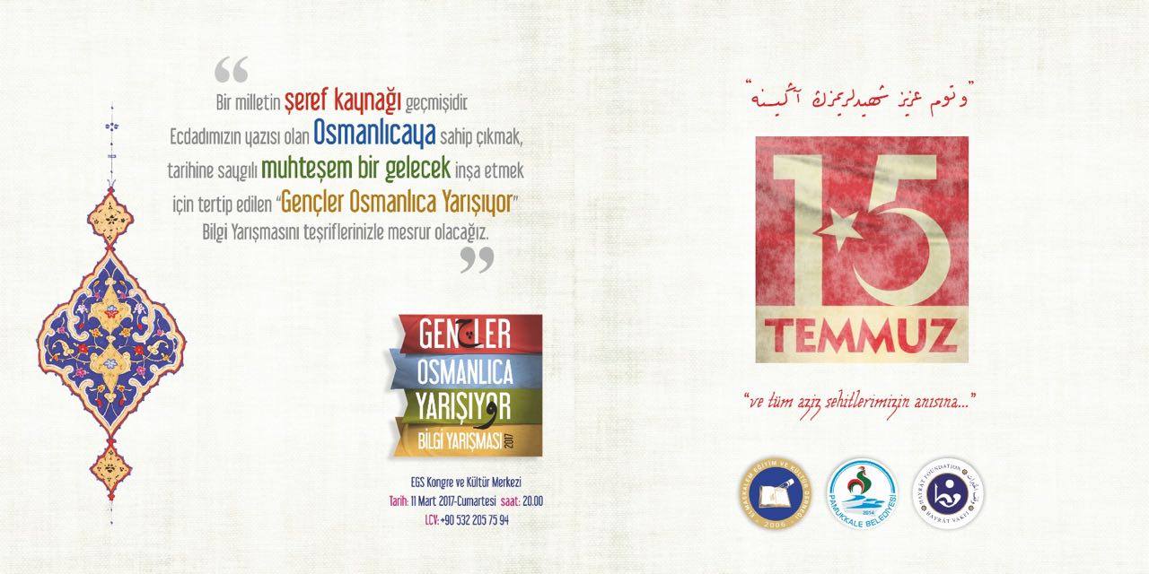 2016 yılında Türkiye’de ilk defa Denizli’de düzenlenen ‘Gençler Osmanlıca Yarışıyor’ bilgi yarışması bu yıl yine Hayrat Vakfı Denizli Temsilciliği ile Elmaskalem Eğitim ve Kültür Derneği tarafından ikinci kez tertip ediliyor. Yarışma 11 Mart 2017 Cumartesi günü saat 20:00’de Denizli EGS Kongre ve Kültür Merkezinde gerçekleştirilecek.