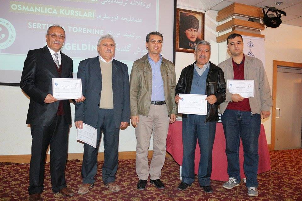 Afyonkarahisar’ın Dinar ilçesinde, Milli Eğitim Bakanlığı Hayat Boyu Öğrenme Genel Müdürlüğü ile Hayrat Vakfı arasında imzalanan protokol çerçevesinde düzenlenen Osmanlı Türkçesi Kursu ilk mezunlarını veriyor.