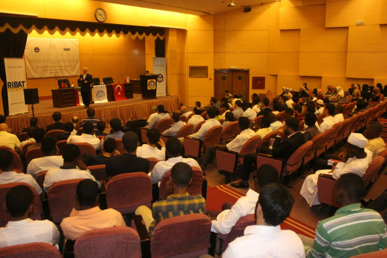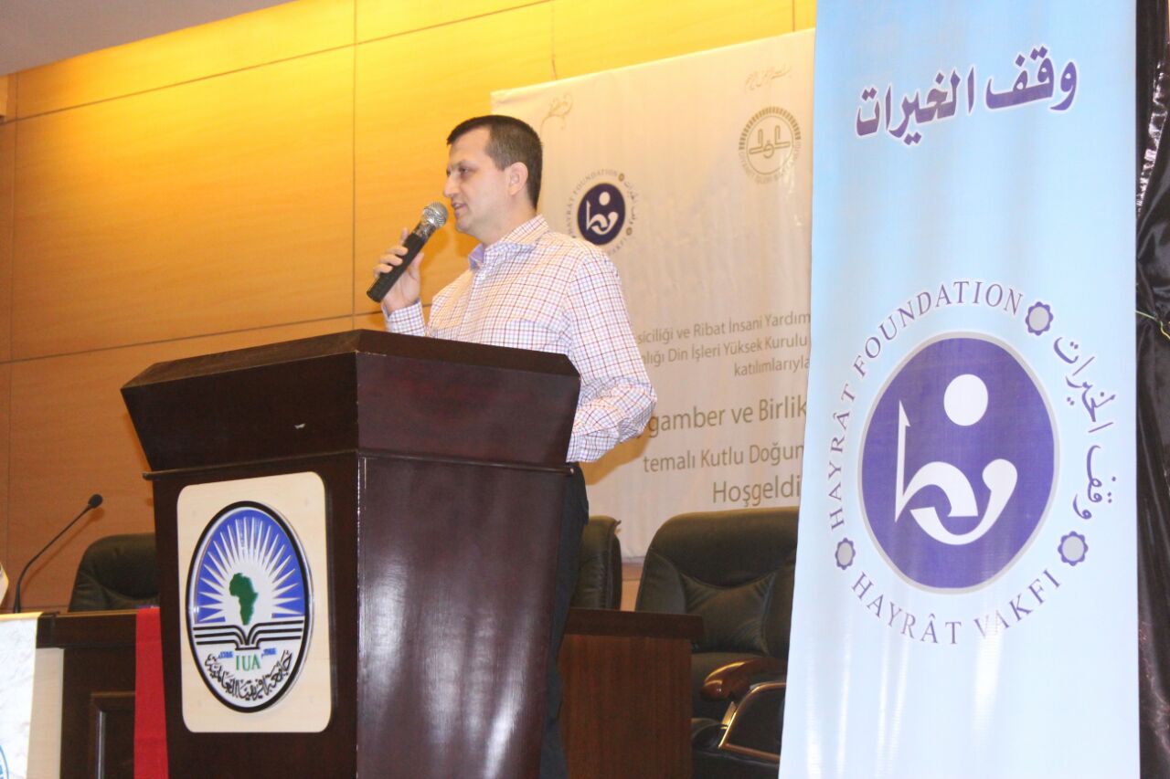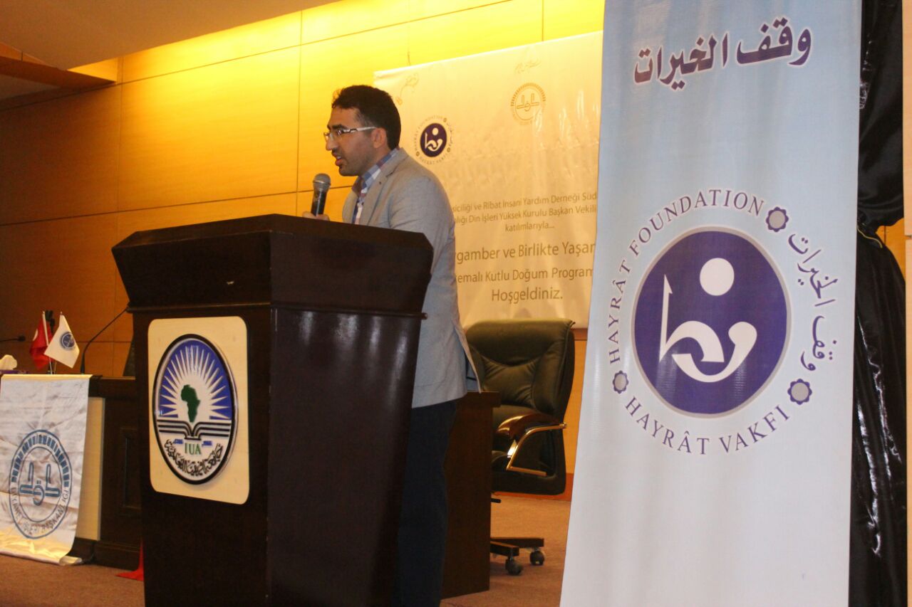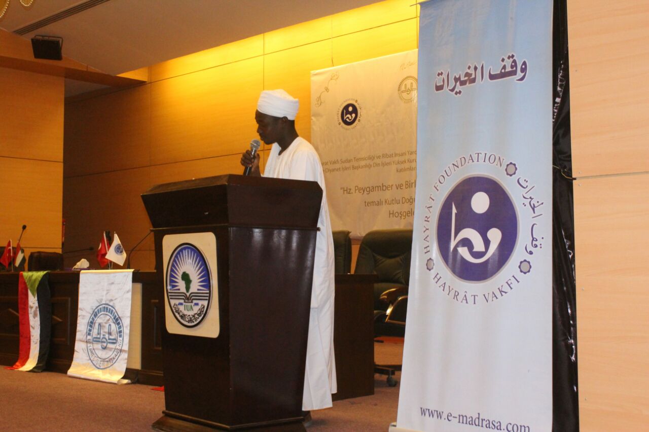 Program Mehmet Said Çetin Hoca’nın Kur’an okumasıyla başladı. Ribat İnsani Yardım Derneği Sudan Temsilcisi Musab Demirlenk Bey konuşmasında milli şairimiz Mehmet Akif’in dilinden bir Sudanlının peygamber aşkını anlatan mısraları okuması çok anlamlı oldu.