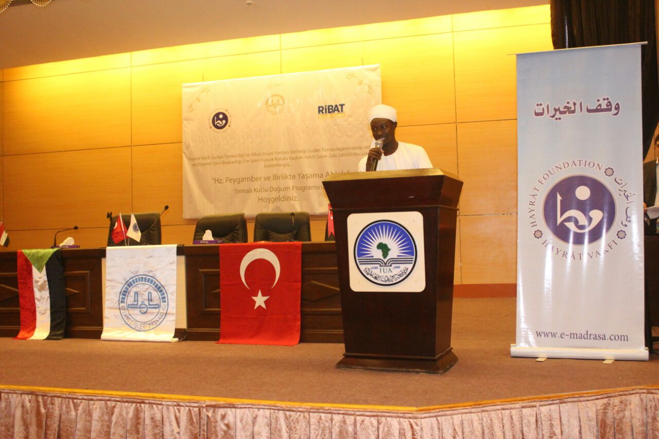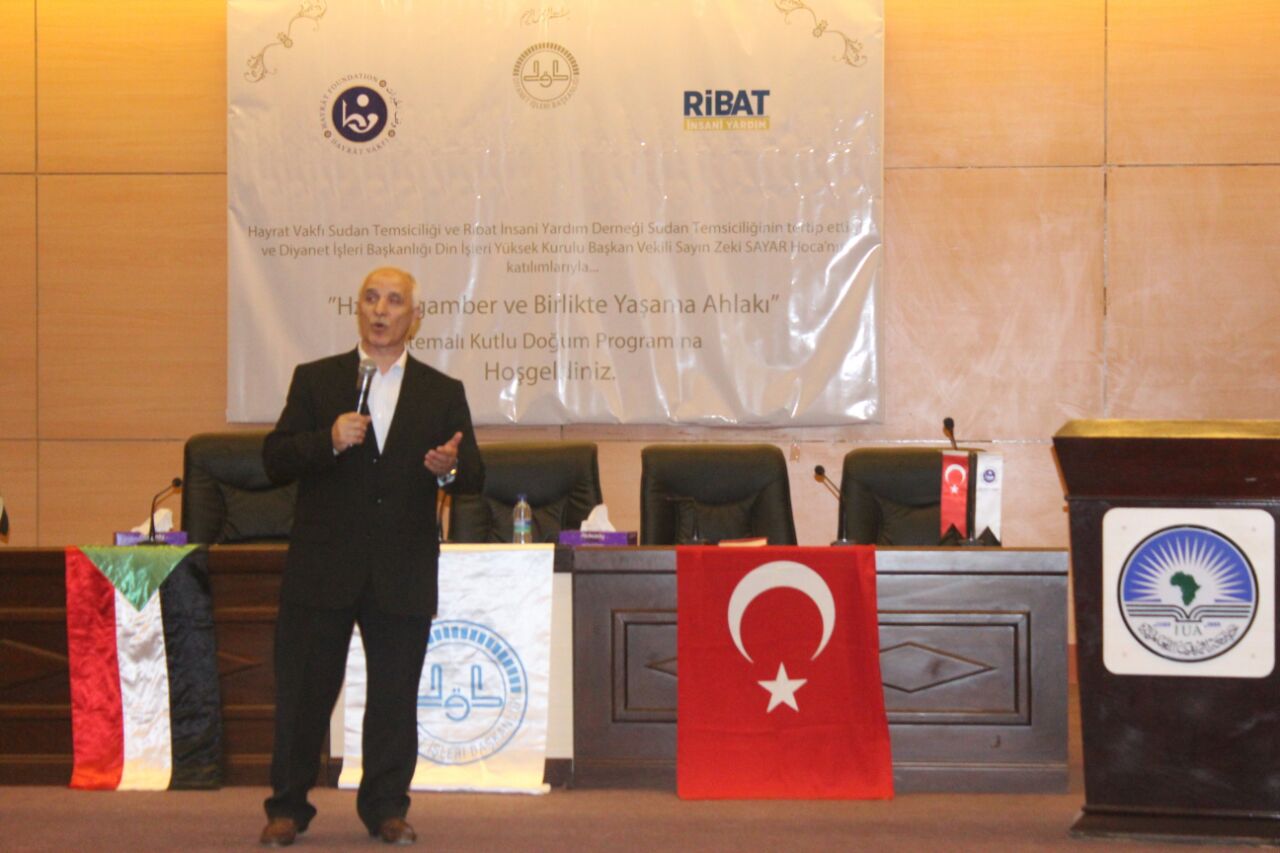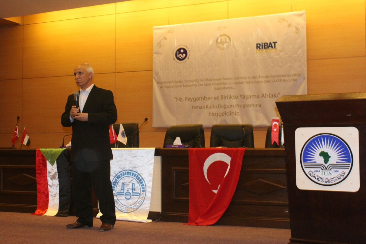 Hayrat Vakfı Sudan Temsilciliği Ve Ribat İnsani Yardım Derneği Sudan Temsilciliği Sudan’ın başkenti Hartum’da 25 Nisan 2015 Cumartesi günü “Kutlu Doğum Programı” tertip etti. Sudan’da yaşayan Türk vatandaşları ve Türkçe bilen Sudanlıların davet edildiği programa konuşmacı olarak Türkiye’den Din İşleri Yüksek Kurulu Başkan Vekili Sayın Zeki Sayar katıldı.