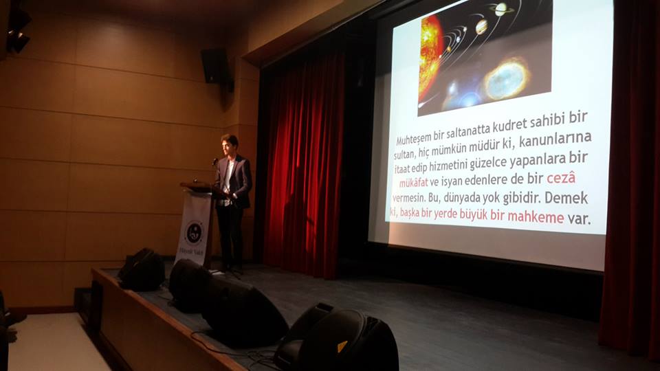 Karabük Hayrat Vakfı Temsilcisi İsmail Alınmaz Bey gerçekleştirdiler Karabük Üniversitesi Makine Mühendisliği Bölümü Öğrencilerinden Seyit Ahmet Karlı Allah’ın izzet ve celal sıfatlarının haşre delili konulu sunumlarını gerçekleştirdiler Karabük Üniversitesi İnşaat Mühendisliği Bölümü Öğrencilerinden Hüseyin Arık ilahi söyledi.