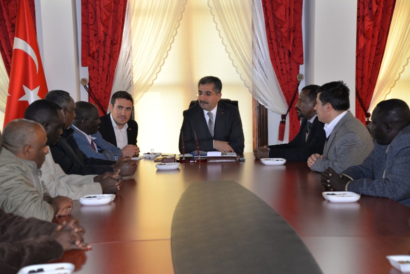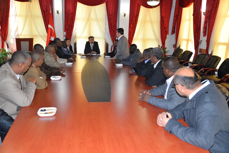 Konuşmaların ardından Vali Zahteroğulları Valilik binasını beğenen Sudan Heyetine binanın tarihçesi hakkında bilgiler verdi.