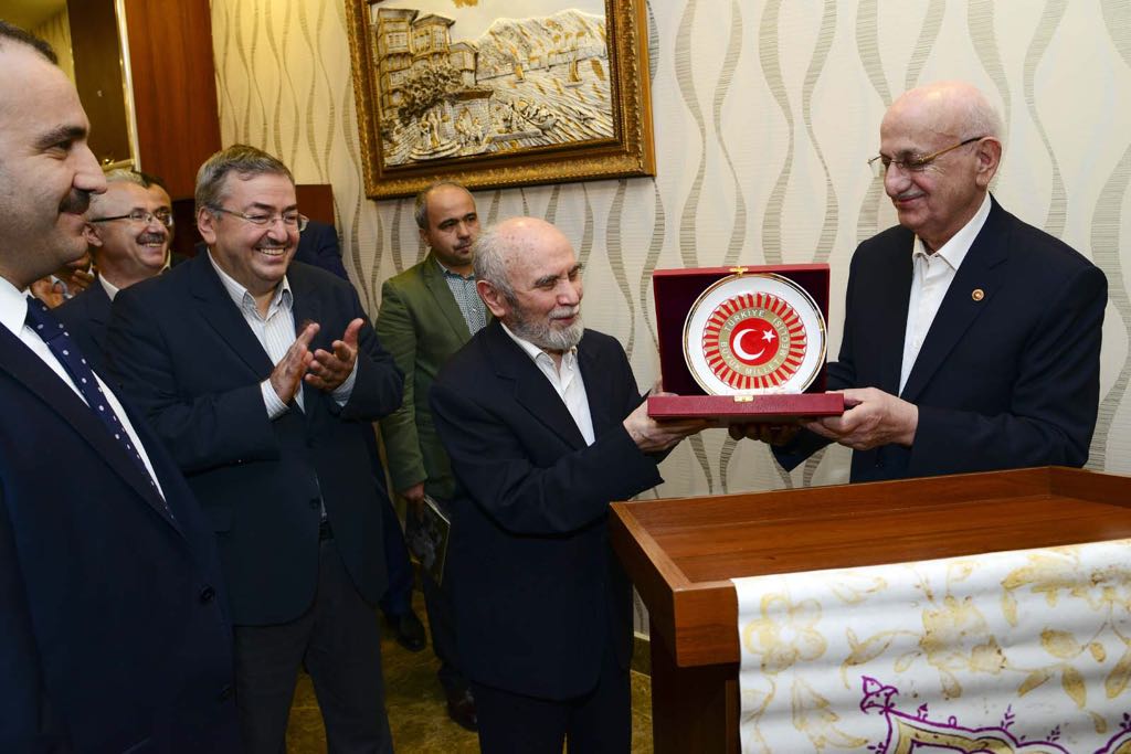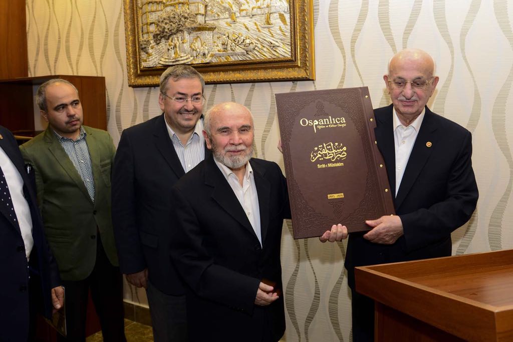 Hayrat Vakfı Başkan Yardımcısı Ahmet Semiz, İsmail Kahraman Beye Osmanlıca Eğitim ve Kültür Dergisi tarafından Yeni Akit Gazetesinde her Cumartesi Osmanlıca olarak neşredilen Sırat-ı Müstakim sayfalarından oluşan çalışmayı takdim etti. İsmail Bey de TBMM tablosunu hediye ettiler.